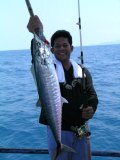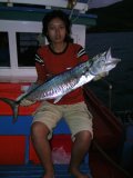 ในที่สุดนายหนุ่มก็สำเร็จโทษงัดเอาปลารัญจวนมานอนเคียงคู่กับปลาอินทรี ในตะกร้าได้เป็นผลสำเร็จ