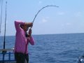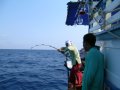 ห่างจากเรือออกไป ราว 60 เมตร ท่าทางการสู้เบ็ดแบบนี้คงไม่แคล้วเป็นปลารัญจวนแน่แล้ว