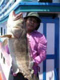 แล้วในที่สุดเกมก็จบลงชัยชนะเป็นของพี่หมู เมื่อปลาเก๋าไซส์ มหึมา ลอยพุงป่องเอาท้องชี้ฟ้าข้างกาบเรือ