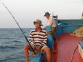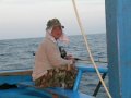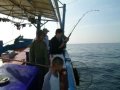 ห่างจากท้ายเรือเราไปประมาณ 100 เมตรเห็นจะได้ สายเบ็ดถูกหย่อนลงน้ำอีกครั้ง