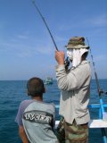 ก็เล่นเอาล่อเอาเถิดเย่อกับมันนานเกือบ ครึ่งชั่วโมง ก่อนที่เกมส์จะไปปิดลงที่ท้ายเรือ