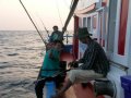 สมาชิกทางหัวเรือยังคงช่วยกันตกหมึกต่อสู้กับอากาศที่หนาวเย็นส่วนสมาชิก
