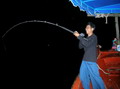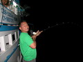 แม้แต่ตัวผม ที่อัดเจ้าลูกหมู ขึ้นมาได้ตั้งหลายสิบเมตร มองดูเอ็นในสปูลเหลืออีกแค่ 10 กว่าเมตรมันก็จะลอยขึ้นสู่ผิวน้ำแล้ว จู่ ๆ สายเอ็นชุดหน้าขนาด 100 ปอนด์ ก็ขาด ไปอย่างนั้นแหละ พร้อมกับฝากตัวเบ็ดขนาด 7 โอ ติดคาปากปลามันไปด้วย รึว่าวันนี้ มันจะไม่ใช่วันของเรา ว้า...ตามฟอร์มเลยพี่โย อัดปลาใหญ่ขาดเหมือนปีที่แล้วเปี๊ยบเลย เสียงตี๋ใหญ่ บ่นพึมพำเป็นหมีกินผึ่ง ระหว่างที่เราแล่นเรือเพื่อนจะย้ายหมายสิ่งหนึ่งที่ทำให้พวกเราในทีมละอ่อน ได้สนุกสนานกับอรรถรสในการตกปลาไม่รู้สึกเบื่อหน่าย พวกเราไม่ปล่อยเวลาให้สูญเปล่า ผมหยิบเหยื่อปลาบิน ของพี่หมูโอเชี่ยน มาผูกกับอุปกรณ์ของคุณพรชัย เพื่อจะทดสอบให้เพื่อนๆ ได้ชมภาพที่พวกเราได้เห็นกับตา ฝูงปลาอีโต้มอญ ที่กระโจน เข้าขย้ำเหยื่อเบิรด์ อยากกระหายหิว เพียงไม่กี่เสี้ยววินาที่สายตาพวกเราเห็นปลาอีโต้มอญ กระโดดโหยงเหยง ห่างจากตัวเหยื่อปลาบินไกลเป็นร้อยเมตร มันกระโจนพรวดเดียวมางาบเหยื่อของพวกเราแล้ว เห็นกับตากันแบบนี้ ก็ต้องยอมรับในประสิทธิภาพของเจ้าเหยื่อตัวนี้ละขอรับ จวบจนตะวันลับพื้นน้ำ คืนนี้เรือแต่ละลำคงตระเวน พานักตกปลาแต่ละทีม ไปเฝ้าตกปลาตามหมาย ดินดาน หรือซากเรือจม ตามแต่ความถนัดของไต๋แต่ละคนกันละ เช้าวันที่ 2 ของทริบนี้ เสียงวิทยุส่งสัญญาณมาจากเรือไต๋เปีย รายงานผล มาว่า วันนี้ยังไม่ได้ปลาเป็นชิ้นเป็นอันเลย จะมีก็แต่ปลาอีโต้มอญ ที่สมาชิกถล่มสะเกือบจะยกฝูง ส่วนทีมหมูหัน จากไต๋วุฒิ ก็ไม่น้อยหน้าใครเมื่อไต๋วุฒิ รายงานผลแจ้งมาว่า เจ้าหนุ่มบินไทย งัดเอาลูกหมูไซร์ 12 กิโลขึ้นมา ส่วนทีมปอบนมเปรี้ยว ขาดการติดต่อ รึว่าไต๋มะระโดนสาวกปอบ จัดการ แดรก ไปแล้วละหว่า! และเมื่อได้เวลาที่เรือทุกลำ ต้องมารวมกันที่หน้าเกาะหวายเพื่อ นำผลงานของแต่ ละทีมมาแสดงให้เพื่อนๆ ได้ชื่นชม และสิ่งมหัศจรรย์ก็เกิดขึ้นกับทีมหมอผีใจง่าย เมื่อยกปลาเก๋าไซร์โต กว่า 8 ตัวขึ้นมานอน โชว์เรือนร่างที่อ้วน อลึ่งฉึ่ง อวดเพื่อนๆ ได้ชม แถมยังมีปลาอังเกย ปลาอื่นๆ อีกหลาย 10 ตัว ปลาพวกนี่ตกได้แค่ช่วงกลางคืน เท่านั้นนะเนี่ย ทีมหมอผีได้ทีปล่อยแมงโม้ เสียเลย อีกทีมที่น่าทึ่ง ก็คือทีมปอบนมเปรี้ยว งัดผลงานงานออกมาโชว์ ไม่น้อยหน้าทีมอื่นเลย ก็แหม จะยอมกันได้ยังไงงานนี้ ไต๋มะระ เล่นย้ายหมาย ถึง 14 ครั้งไม่ได้หลับได้นอนกันเลย คนอะไรวะ โคตรอึดเลย พึ่งเจอนี่แหละ ส่วนผลงานจากทีมกุ๊กกิ๊ก ของพี่เหนี่ยว ก็ใช่ย่อย ปลาแต่ละตัว งามๆ ทั้งนั้น โดยเฉพาะ คุณโฟว์ ที่สามารถจั่วเอาปลาเก๋าไซร์น้องลู
