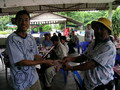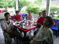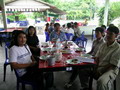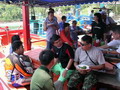 เที่ยงตรง วันที่ 22 เมษายน ที่ร้านอาหาร นำโชค ผู้คนมากมายจากทั่วทุกสารทิศ ทยอยเดินทางมาถึง สำรับอาหารที่เตรียมไว้ ถูกลำเรียงนำมาวางบนโต๊ะ ต้อนรับหมู่คนตกปลา และกลุ่มของไต๋เรือ ทั้ง 5 คน เสียงแซวหยอกล้อ ยั่วเย้า ของเพื่อน ที่แซวกันไปแซวกันมา ผสมผสาน กับเสียงเฮฮา ดังไม่ขาดสาย เหมือนกับพวกเรา กำลังอยู่ใน วัย จ๊าบ ช่วงเวลานี้ จึงมีแต่ความสุข กับความสนุก เท่านั้นก็ว่าได้ หลังจากอิ่มหมีพลีมันกันแล้วก็เข้าสู่เวลา ถ่ายทอดความรู้ ในด้านการอุปกรณ์ตกปลาให้กับเพื่อนๆ ที่มาร่วมงาน นักตกปลาจำนวนไม่น้อย ที่ไม่มีความรู้เรื่อง คันเบ็ด ก็จะได้รู้กันก็วันนี้แหละ ในครั้งนี้เราได้รับเกียรติ์จาก เฮียกรวย ผู้มากประสบการณ์ในด้าน สร้างคัน Custom Build ภายใต้ชื่อ Infinity Instructor ได้มาถ่ายทอดความรู้ ให้กับเพื่อนๆ ที่มาร่วมงาน นอกจากนี้ อีกคนท ี่ต้องกล่าวถึง ก็คือ พี่หมูโอเชี่ยน หลังจากเคยมาร่วมงานนี้เมื่อปีที่แล้ว ก็เกิดติดใจบอกกับผมว่า ไม่เคยตกปลา กับคนแปลกหน้า แล้วสนุกอย่างนี้มาก่อน พอมาปีนี้พี่หมูโอเชี่ยน โทรมาขอจองตั้งแต่ยังไม่ได้เปิดทริบ (นี่ยังดีน่า ที่พี่หม ูได้ตกปลา กับคนแปลกหน้า แต่ถ้าพี่ได้ตกปลากับคนหน้าแปลก แล้วจะเป็นยังไง ฮ่า!) ครั้งนี้พี่หมูโอเชี่ยน ได้ขนวัสดุการ ทำเหยื่อ Jet และเหยื่อปลาบินมาร่วมช่วยสร้างสีสัน ให้กับงานนี้ดูบรรยากาศที่หาที่ไหนไม่ได้ กับการสอน เทคนิคการทำเหยื่อ Jet ให้กับคนที่สนใจแบบตัวต่อตัว