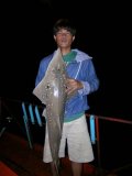 มันเป็นปลาที่พึ่งจะขาดมาจากใครสักคน ดูจากตัวเบ็ด ขนาด 5 โอ 3 ตัว ผูกด้วยลวดสริงอย่างดี