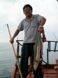 เข้ามาใกล้กาบเรือพวกเราบอกไต๋โต้งไม่ต้องใช้ตะขอเกี่ยวมัน ให้ปลดเบ็ด แล้วปล่อยมันกลับสู้น้ำไป