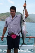 กิจกรรมลากสายดำเนินต่อไป ป่ะลงกันใหม่ ยังมีโอกาส ที่หน้าเกาะด้านขวามือนั้น นายชนบทกล่าว และพอเรือแล่นถึงเกาะที่ว่า สิ่งที่คาดหมายก็เกิดขึ้น คราวนี้เป็นทีของทีมชายน้อยบ้าง เสียงร้องแหบโหยจากรอกอมตะ ส่งเสียงร้องอย่างแหบโหย นายเอ็กซ์รีบกระโดดเข้าคว้าคันขึ้นมาอัดอย่างสบายอารมณ์ฮะ ฮ่า ในที่สุดก็ถึงทีเราบ้างละ ไม่มีพลาดอยู่แล้ว พวกพี่เตรียมเสียเงินกันได้เลย นายเอ็กซ์กล่าวก่อนจะบรรจงอัดปลาอินทรีไซร์งาม ในที่สุดกับข้าวมื้อเที่ยงก็ถูกอัญเชิญขึ้นมาทุบกระบานบนเรือได้สำเร็จ เย้ จ่ายมาสะ พี่บรรจง พี่ซิง นายเอ็กซ์รับทรัพย์ไปตามระเบียบ ป่ะได้ไต๋นุ มื้อเที่ยงมีปลากินแล้ว นายชนบทกล่าว จากนั้นไม่นานพอเรือปล่นผ่านช่องระหว่างเกาะ รอก Shimano 30LRSW ก็ส่งเสียงดังแกรกกกกก แกรก แกรก สนั่นเรือ คุณเสือศรีราชา รับหน้าที่ มืออัด อย่าให้เป็นปลาอุ้ย อีกนะคุณเสือ ตัวนี้ปลาจริงๆ นะไม่ใช่ลอบพม่าแล้ว นายชนบทกล่าวด้วยความมั่นใจ เมื่อสายวิ่งออกซ้ายป่ายขวาอย่างนี้ มันต้องเป็นปลาชัวร์ เอ๊ะ ทำไม มันเบาจังคุณโยหลอกกันรึเปล่า คุณเสือศรีราชากล่าว เมื่อปลายสายเกิดไร้แรงต้านขึ้นมาดื้อๆ สงสัย จะเป็นปลาเอ๊ะ สะละม้างตัวนี้ ฮะ ฮ่า พี่ซิงสบโอกาสแซวคุณเสือศรีราชาทันที ว้า หลุดไปแล้วอ่ะเด่ะ ดูเหยื่อสิ รอยเขี้ยวยังฝังอยู่นี่ไง นายเล็กศรีราชา หน่วยพิสูจน์หลักฐานกล่าวพร้อมชี้นิ้วให้ดูรอยเขี้ยวขนาดใหญ่ที่เกิดขึ้นบนตัวเหยื่อ กิจกรรมลากสายจึงยุติ สมาชิกต่างเข้าไปนอนพักเพื่อเก็บแรงเตรียมไว้ลุยในค่ำคืนนี้