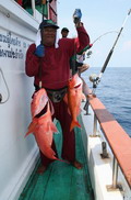 คาราวานคนตกปลา กลุ่มหนึ่งรวมตัวมุ่งหน้าสู่จังหวัดระนอง เพื่อตามหารางวัลที่จะมอบให้กับชีวิต ครั้งนี้คุณบรรจง หมายมั่นปั่นมือขอวัดดวง งัดข้อ กับสัตว์ประหลาดแห่งน่านน้ำ Burma Blanks ดูสักตั้ง ถึงกับขนเอา อาวุธหนัก ขนาดหม้อต้มก๋วยเตี๋ยว หอบหิ้วลงเรือ โอเชี่ยนวันระนองลำ 1 ที่พวกเราให้ความเชื่อมั่นและไว้ใจในฝีมือของไต๋นุ มานานหลายปี การออกเดินทางของพวกเราในครั้งนี้ต่างจากทุกครั้งที่ผ่านมา โดยปกติ เวลาที่เราจะไปตกปลาที่พม่า จะออกเดินทางกันเมื่อมืดค่ำ ล้อเริ่มหมุนก็ปาเข้าไปเกือบ 5 ทุ่ม ถึงระนองก็ประมาณ 6 โมงเช้านู้น พอขนของลงเรือเสร็จกว่าจะได้หลับนอน ก็ปาไปเกือบเที่ยงวัน (มานึกดูพวกเรานี่มันก็โคตรอึดเหมือนกันนะ) จะมาตื่นอีกที ก็โน้นเลย ตะวันเกือบจะตกดิน มาคราวนี้ พวกเราเลยมาเปลี่ยนแผนการเดินทางกันใหม่ เรียกได้ว่าตั้งแต่ออกทะเลตกปลา มาหลายครั้งไม่เคยมีครั้งไหนที่มีการวางแผนได้อย่างละเอียดยิบ เท่าครั้งนี้ ว่ากันตั้งแต่การเตรียมทุ่นเหล็กมาใช้ถ่วงแทนลูกตะกั่ว ที่มีราคาแพงเหลือหลาย กิโลหนึ่งปาเข้าตั้ง 140 บาท แต่เรามาใช้เหล็กก่อสร้างขนาด เส้นผ่าศูนย์กลาง 6 หุนแทน นำตัดเป็นท่อนๆ ท่อนหนึ่งยาว 6 นิ้ว จะได้น้ำหนัก ครึ่งกิโลพอดี ถ้าอยากได้น้ำหนัก 1 กิโล ก็ตัดท่อนเหล็กให้ยาว 12 นิ้ว เชื่อมห่วงไว้สำหรับผูกสายเอ็นเข้าไปหน่อย ก็ใช้แทนลูกตะกั่วได้แล้ว ราคาลูกหนึ่ง ที่น้ำหนัก 1 กิโล ก็แค่ 40 กว่าบาท ประหยัดเงินในกระเป๋าไปตั้งเยอะ ยุคนี้สมัยนี้อะไรที่พอจะประหยัด Save เงินในกระเป๋าเราได้ก็ต้องทำ ค่าเรือนี่ก็เช่นกัน ถ้าพอจะประหยัดได้เราก็ต้องประหยัด เผอิญว่าคณะกลุ่มนี้จะเน้นเรื่องตกปลาเป็นสำคัญขอให้ที่ตกปลาสะดวกสบายเท่านั้นเป็นพอ ที่หลับที่นอน ถ้าไม่เน่าจนเกินไปนัก พอทนซุกตัวลงนอนได้แล้ว แม้แต่กองอวนเหม็นๆ พี่ซิงของเรายังนอนมาแล้วออกบ่อยๆ สิ่งอำนวยความสะดวกสบายที่เกินจำเป็นนั้นไม่ใช่สิ่งสำคัญต่อคณะนี้เท่าไรนัก