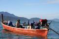 ก็ถึงแล้ว สมาชิกจึงช่วยกันขนสัมภาระคนละไม้คนละมือ เดินไปลงเรือแทนถือเป็นการ