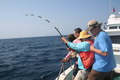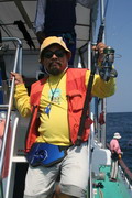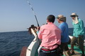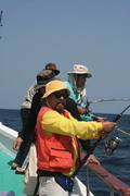 ดวงตะวันเริ่มคล้อยตัวลงต่ำลงไปทุกที หลังจากพลาดหวังกับโทฟี่ ชิ้นใหญ่ไปมาดๆ วงสนทนาต่างกล่าวขวัญ ถึงวีรกรรมที่พึ่งผ่านไปสดๆ ร้อนๆ เรือ Ocean One Ranong ยังคงแล่นต่อไปข้างหน้า จนกระทั่งตะวันลับฟ้าความมืดเข้ามาแทนที เวลาเดินผ่านไป นานแสนเท่าไหร่ไม่อาจรู้ได้ จนกระทั้งเรือแล่นมาถึง หมายตกปลาตรงเวลาตามที่ไต๋นุบอกไว้ สมาชิกเริ่มทยอยโผล่ออกมาจากห้องแอร์ ก่อนจะไปคว้าอาวุธประจำกายของใครของมัน แล้วนำเหยื่อ Jig ไปอาบแสงไฟก่อนจะทิ้งดิ่งสู้ก้นทะเล ปลาเข้าจอแล้วครับพ่อแม่พี่น้อง เชื้อปลาอยู่ที่ 50 เมตรขอรับ นายเก๋ป่าวประกาศระยะตำแหน่งปลาตามที่ Sounder จับพบให้สมาชิกทราบ อ้าว อ้ายเอก เอ็งเอาแล้วเร๊อะ อารายของมันว่ะหย่อนปุ๊บกินปั๊บเลยรึวะเนี่ย โกเพชรที่ยื่นหย่อนเหยื่ออยู่ข้างๆ กล่าวออกมาด้วยความอิจฉา อุ๊บ ข้าก็เอาแล้วเหมือนกันแล้วโว้ย อุ อุ อุ อย่าดิ้นนักสิวะ โกเพชรตะโกนออกมาด้วยความสะใจ เวลานี้ไม่ว่าจะเป็นนายเคี้ยง พี่หมูโอเชี่ยน บังเลาะ หรือกอล์ฟ กำลังนัวเนียอัดปลากันให้วุ่นวายไปหมด ในขณะที่นายเก๋ยังคงเป็นเนวิเกเตอร์คอยรายงานเชื้อปลาอยู่เป็นระยะ วู้ เชื้อเต็มจอแล้วครับเจ้านาย ไม่ดูไม่เดอมันแล้วไปตกปลามั่งดีก่า นายเก๋กล่าวจบก็กระโดเข้าวงมาร่วม แจม คว้าคัน ขึ้นมากระดก งึก งึก ไม่ทันไรคันก็โค้งงอ เอ้า ติดแล้ว ท่าทางจะเป็นเยลโลฟินสะละม้างตัวนี้