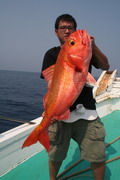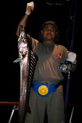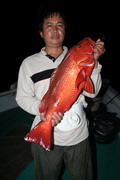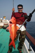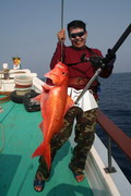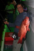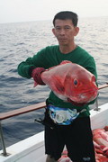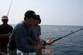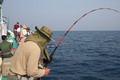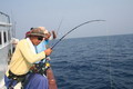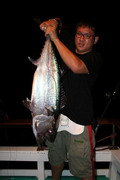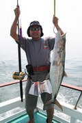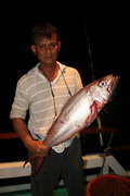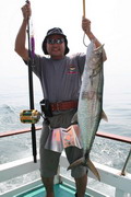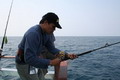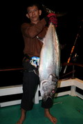 30 ปอนด์ขึ้นมาเกี่ยวเหยื่อเนื้อปลาโอ ก้อนใหญ่ แล้วส่งลงน้ำ เพียงเหยื่อลงสู้พื้นไม่ถึงนาที