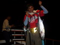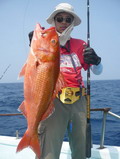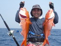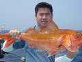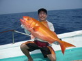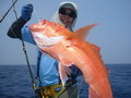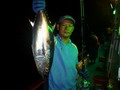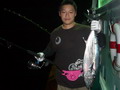 จำนวนปลามากมายหลายตะกร้า ถูกขนย้ายลงไปแช่น้ำแข็งรักษาความสดไว้ ยามนี้เพื่อนๆ หลายคน เริ่มออกอาการเหนื่อยล้าจากการ Jigging จึงหันมาตกปลาหน้าดินแทนหวังจะได้มีเวลาหยุดพักระหว่างรอปลากินเหยื่อบ้าง เปลี่ยนไปเล่นเหยื่อสด ลงหน้าดินบ้างก็ได้นะครับพี่ชาญ จะได้ไม่เหนื่อย นายชนบทร้องบอก พี่ชาญรีบจัดการเปลี่ยนไป เป็นเกี่ยวเหยื่อสด ถ่วงตะกั่วลงหน้าดินแทน ส่วนคนหนุ่มที่ยังมีกำลังเหลือเฟือ ก็ยังใช้วิธี Jigging ต่อไป แต่เหมือนกรรมซัด สวรรค์แกล้ง แทนที่พี่ชาญจะได้หยุดพักกลับต้องเหนื่อยหนักขึ้นกว่าเดิม เมื่อพี่ชาญหย่อนเหยื่อถึงพื้นปุ๊บ สายก็ถูกกระชากอย่างแรง จนคันเบ็ดแทบจะหลุดออกจากมือ คันเบ็ดโน้มลงจนปลายคันเกือบจะจรดผิวน้ำ เฮ้ย มันเอาเลยรึไงวะเนี่ย เวรสะแล้ว โดนคุณโยหลอกให้ปลา อัดอีกแล้วเรา พี่ชาญสบถเสียงออกมา พร้อมกับรับชะตากรรม ที่ต้องเหนื่อยอีกต่อไป เกมส์การต่อสู้กับ ปลาที่ระดับน้ำลึก 80 เมตร เล่นเอาเหงื่อตกไปหลายแหม่ะ อึ๊บ อ๊ากกก เสียงพี่ชาญแหกปากร้องดังลั่น ทุกครั้งที่ออกแรงโน้มงัดคัน สายเบ็ดถูกเก็บขึ้นมาทีละน้อย ละน้อย ในที่สุดปลาแดงเขี้ยว ตัวบักเอ๊บ ก็ถูกพี่ชาญงัดจนลอยตุ๊บป่อง เฮ้ย ไอ้เขี้ยว ตัวใหญ่ด้วย มิน่าละมันถึงดิ้นดีนัก อย่างนี้เหนื่อยอย่างไรก็ยอม ฮะ ฮ่า พี่ชาญกล่าวด้วยความดีใจกับผลงาน จากผลงานปลาแดงเขี้ยวของพี่ชาญ ได้เรียกร้องให้เพื่อนๆ หันกลับมาสนใจลงสายเหยื่อสดหน้าดินแทนการ Jig ที่ปลาเริ่มจะกินเหยื่อ Jig บางตัวลง เปลี่ยนไปเล่นหน้าดินอย่างพี่ชาญบ้างดีกว่า เผื่อจะฟลุ๊ค แบบพี่ชาญ ฮิ ฮิ เสียงหนุ่ยบึงสำราญ มหกรรม ทิ้งบอม หน้าดินจึงเริ่มต้นขึ้นท่ามกลาง ความมืดมิด และมันก็ไม่ทำให้เพื่อนสมาชิกผิดหวัง ปลาแดงเขี้ยว หลายตัวถูกงัดขึ้นมานอนอ้าปากผะงาบ ๆ ในตะกร้า และ แล้วเวลา แห่งความสนุก ค่อยๆ ผ่านเลยไป เมื่อความง่วง คืบคลานเข้ามา สมาชิกหลายคนไม่อาจต้านทาน ทนความง่วง เริ่มขยับกายย้ายก้น ทยอยเก็บคันเบ็ดไปนอนทีละคนสองคน