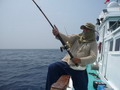 ในขณะที่นายเล็กศรีราชา ยังคงต่อสู้กับคู่ต่อกร ไม่เลิก ผลัดกันรุกผลัดกันรับ เป็นอยู่อย่างนี้หลายครั้ง สงสัย มันจะเป็นไอ้หลามสะละม้างนายเล็ก พี่ซิงเอ่ยปาก ทายปลาเพราะเห็นนายเล็กสู้กับมันนานเหลือเกิน มันวิ่งเร็วอย่างนี้ไม่น่าจะใช่ไอ้หลามนะผมว่า นายเล็กกล่าวแบบไม่เชื่อ ในที่สุดคู่ต่อสู้นายเล็กที่ต่อสู้กันมานานตั้งแต่ดวงตะวันยังไม่โผล่กระทั่งดวงตะวังโผล่ส่องแสง ก็ยอมแพ้ เมื่อมันลอยตัวขึ้นสู่ผิวน้ำ คำเฉลยก็ปรากฏ พอสมาชิกได้เห็นลำตัวยาวมีลายพร่อยไปทั้งตัว เสียงสมาชิกก็ดังขึ้นเกือบจะพร้อมกันว่า ไอ้วาฮู หู้ย ตัวใหญ่ด้วย 10 โลอัพ แหงๆ ตัวนี้ พี่ไพรวัลย์ตื่นตาที่ได้เห็น วาฮู ตัวใหญ่ เพราะปลาประเภทนี้ ในฝั่งอ่าวหาดูยากมาก หรือไม่ก็สูญพันธ์ไปจากอ่าวไทยตั้งนานแล้ว จังหวะนั้นเอง ไต๋นุ ก็ร้องสั่งให้เก็บเบ็ด เพราะต้องย้ายเรือไปหมายใหม่ เสียงเครื่องยนต์คำรามขึ้นอีกครั้ง นายชนบทไม่รอให้โอกาสงามๆ จากไป จึงรีบไปคว้า ชุด Trolling ขึ้นมาผูกเหยื่อ YUZURI รุ่น HYDRO MAGNUM สีเงินหลังดำ สายลงสายรีดไม่ต้องใส่ละวะ งานนี้ ผูกมันตรงๆ กับสายเมนมันสะเลย นายชนบท พึมพำขณะที่มือทั้งสองข้างกำลังง้วนกับการผูกสายเข้าเงื่อน เหยื่อตัวโปรด ก่อนจะนำไปหย่อนท้ายเรือ พร้อมกับพี่ซิง ที่มาร่วมวงปล่อยสาย Trolling ด้วย RAPARA CD-18 เราลงเหยื่อในขณะที่เรือยังไม่ทันจะเคลื่อนตัว จึงอาศัยกระแสน้ำเป็นตัวช่วยพาเหยื่อให้ไหลไป ไต๋นุเร่งเครื่องยนต์ดังกระหึ่มขึ้น ใบจักรตีน้ำดันเรือ Ocean One Ranong 1 เคลื่อนตัวทะยานไปข้างหน้า ลากพาเหยื่อปลอมให้ออก Action เพียงแค่เรือเดินหน้าออกไปไม่ถึง 30 เมตร คันที่ลงเหยื่อ Yozuri ไว้ก็โน้มลงจากแรงกระชาก เสียงรอก Tirgar 30 WLRSA ที่พึ่งจะถอยมาเพื่องานนี้โดยเฉพาะ คำรามเสียงร้องโหยหวน กร๊อกกกกก เสียงร้องดังยาวเหยียด นายชนบท ยื่นอยู่หน้าคันรอท่าอยู่แล้ว ไม่รอช้า ยื่นมือไปคว้าคันที่ปักอยู่ในกระบอกขึ้นมากุมไว้มั่น นิ้วโป้งดันคลิ๊กเสียงขึ้น ปิดสัญญาณเสียงที่ร้องแสบแก้วหูลง ก่อนจะดันคานโยกแดรกปรับเบรกให้แน่นขึ้น