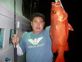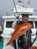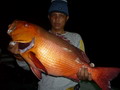 ตาม เวลาเดียวกันนั้นเองฝูงปลาแดงเขี้ยวก็เข้าถล่มเหยื่อของแต่ละคนเป็นว่าเล่น เผลอหน่อยเดียว จำนวนปลาแดงเขี้ยวก็เต็ม 2 ตะกร้าเต็มๆ ส่วนพี่พี่ซิง ยังคงทะเลาะกับสัตว์ประหลาด ไม่เลิก ยิ่งได้เห็นปลาที่พรรคพวกงัดขึ้นมาแต่ละตัวแล้วยิ่งทำให้คิดหนัก จึงตัดสินใจงัด เพื่อจะได้รีบปิดบัญชี ที่ยืดยาวแต่แล้วจะด้วยคันที่ล้ามานานหรือด้วยเหตุใดมิอาจจะทราบได้ คันสุดสวาทก็ระเบิดดังสนั่นหวั่นไหวได้ยินไปทั่วลำเรือ โพล๊ะ เสียงดังฟังหนักแน่นดังขึ้นในขณะที่พี่ซิงโหมแรงงัด อ๊ะ จึ๊ย... คันตูหัก พี่ซิงเปรยออกมาอย่างแผวเบา สายตาจับจ้องที่คันเบ็ดสุดสวาทขาดใจ ที่บัดนี้มันกุดเหลือเป็นเพียง ตอ เบ็ด ชะหน่อย แน่ะ ล้อคันรักสุดสวาทของตูหักเป็นสองท่อนเลยนะ เมิ้ง ตาย สถานเดียว ด้วยอารมณ์ที่คุกรุ่นบวกด้วยความโกรธแค้น พี่ซิงรวบรวมพละกำลังทีมี งัดคันเบ็ดที่บัดนี้เหลือเพียงแค่ ตอเบ็ด เพราะส่วนปลายมันจมดิ่งรูดตามสายลงน้ำไปแล้ว ด้วยพลังอันเหลือเฟือของพี่ซิง ไม่ช้าไม่นาน ตัวการที่อาจหาญ ทำคันเบ็ดสุดรักสุดสวาทของพี่ซิงหัก ก็เผยโฉมขึ้นมาให้ประจักษ์แก่สายตา ไอ๋หย๋า ไอ้เก๋า ไอ้เก๋าเจ๊ง ลูกหมู ไม่ใช่ไอ้หลาม พี่ซิงถึงกับตะลึงงันเมื่อปลาเก๋าลูกหมู ตัวใหญ่หนักร่วม 20 กิโลฯ ลอยตุ๊บป่องอยู่เบื้องหน้า รอยยิ้มปรากฏบนใบหน้าพี่ซิง ความโกรธแค้นหายไปเป็นปลิดทิ้ง ในขณะที่ บรรดาปลา หลากหลายชนิด สลับกันเข้ามาถล่มเหยื่อ อย่างต่อเนื่อง ทั้งปลาหมูสี หรือปากแหนบ หรือปลาจ้าวสมุทร หรือกะพงแดงเขี้ยว ตกปลากันอย่างสนุกสนาน ไม่รู้จักเหน็ดเหนื่อย