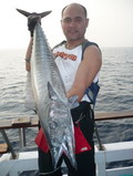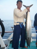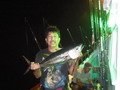 เสียงอึกกระทึกคึกโครมดังลั่นเรือ ปลุกให้สมาชิกที่กำลังหลับสบาย ตื่นจากการหลับใหล เกิดอะไรขึ้นหรือ นุ ทำไมเสียงดังจัง นายชนบทชะโงกหน้าถามไต๋นุ ทันที ที่ ลุกขึ้นจากห้องนอนข้างหลังในเก๋งเรือ อ้อ ไม่มีอะไรหรอก เพื่อนพี่โย ตื่นเต้นกับปลามันโดดขึ้นมาเล่นไฟ กัปตันนุ กล่าว อ้าวถึงหมายแล้วเหรอ ถึงนานยัง นี่มันกี่ทุ่มกี่ยามแล้วละเนี่ย นุนายชนบทเอ่ยปากถามกัปตันนุ เป็นชุด 2 ทุ่มได้ พึ่งจะถึงนี่เอง ยังไม่ทันมัดสมอเลย กัปตันนุกล่าว นายชนบทขยับกาย ลุกออกมาจากที่นอนมองออกไปรอบๆ เรือ เห็นพี่ไพรวัลย์กำลังถือคันยืนจังก้า เงื้อแขนสุดเหยียดเตรียมหวดเหยื่อป๊อบ อยู่ทางหัวเรือ ขวับ เสียงคัน Smith แหวกอากาศส่งเหยื่อป๊อบ หัวมู่ทู้ พุ่งออกไปข้างหน้า ป๊าบเข้าให้ โดนแล้วมั๊ยละ งานเข้าแล้ว น้าโย มันส์จริงๆ เลย พี่ไพรวัลย์สะใจในอารมณ์ เมื่อปลากะมงตาเหลือกโดดงับเหยื่อเข้าเต็มปากเสียงน้ำแตกกระจายดัง ตูม คัน Smith และรอก Accurate SR12 รอกสปินนิ่ง Twin drag สัญชาติอเมริกาที่พึ่งจะไปถอยมาจากร้าน เอกมัยฟิชชิ่งแทคเกิ้ล ทำงานทันที เวลาผ่านไปไม่นานสุดยอดอุปกรณ์ของพี่ไพรวัลย์ก็สามารถสยบกะมงตาเหลือกให้มานอนดิ้นในตะกร้า ยีงไม่ทันที่พี่ไพรวัลย์จะปลดเบ็ดออกจากปากปลากะมงตัวนั้น เสีงเอะอะมะเทิ้งก็ดังลั่นมาจากกาบเรือด้านซ้าย เฮ้ย อย่าดึงคันผ๊มอย่างนี้ เดียวมันจะหัก เสียงพี่ซิง พี่ใหญ่ของพวกเรานั้นเองที่แหกปากร้องสะเสียงดัง ชวนให้คนที่ได้ยินต้องหันหน้าไปมองยังแหล่งกำเนิดเสียงนั้นเป็นจุดเดียว ภาพพี่ซิงนั่งถือคันเบ็ด ออกแรงงัดกับสัตว์ประหลาดใต้น้ำ อย่างเอาเป็นเอาตาย อึ๊บ.....นี่แน่ะ...ให้มันรู้สะมั่ง ว่าไผ เป็นไผ พี่ซิงกัดฟันขบกรามขึ้นเป็นสันนูน โหมแรงเท่าที่มีประเคนใส่คันเบ็ด งัดขึ้นด้วยความยากลำบาก รึว่ามันจะเป็นน้องมายหว่า ความคิดแล่นวูบเข้ามาในสมอง คิดว่าคู่ต่อกรที่กำลังยื้อยุดฉุดกระชากอยู่นี้ คงจะป็นฉลามร้ายแน่แล้ว เป็นไปได้ มันอาจจะเป็นฉลามก็ได้นะพี่ซิง บรรดากองหนุนส่งเสียงคล้องตาม