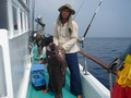 เสียงเครื่องยนต์ เรือ Ocean One Ranong 1 คำรามขึ้นอีกครั้ง กัปตันนุ บังคับเรือแล่นเข้าสู่หมายข้างหน้าที่อยู่ห่างไกลไปทางทิศเหนืออีก 11 ไมล์ทะเล ในขณะที่เจ้าเท้งและน้าเหน่ง 2 คนเรือช่วยกันลำเลียงซากปลาสีทอง ที่นอนเกะกะบนพื้นเรือ เข้าสู่ห้องเย็นแช่ปลา จะพาไปไหนดีละ ไต๋นุ พี่ชาญ เอ่ยปากถามขณะที่เรือกำลังแล่นเต็มฝีจักร จะพาพวกพี่ๆ ไปอัดเก๋าถ่าน ที่หมายนี้ดูสักหน่อย ปีนี้ผมยังไม่เคยพาใครไปเลย กัปตัน นุ ตอบขณะที่สายตามองหน้าจอ GPS เพื่อดูทิศทางที่จะไปกัน เวลาผ่านไป ชั่วโมงกว่า เสียงเครื่องยนต์ก็เบาเสียงลง แสดงว่าเราเดินทางมาถึงที่หมายแล้ว เอ้า ตื่นกันได้แล้ว ถึงหมายแล้ว เตรียมอุปกรณ์ชุดใหญ่ไว้เลยนะครับ เราจะตกปลาเก๋าถ่านกัน นายชนบทตะโกนปลุกเพื่อนๆ ที่นอนหลับใหล ในห้องนอนที่เปิดแอร์เย็นฉ่ำ สมาชิกพอได้ยินเสียงนายชนบท ต่างกุลีกุจอลุกออกมาคว้าคันเบ็ดเกี่ยวเหยื่อปลาโอและ เตรียมพร้อม รอให้เรือเข้าที่เข้าทาง พอสายสมอตึง เสียงกัปตันนุก็ร้องตะโกนออกมาว่า เอ้า หย่อนเหยื่อได้เลยครับ น้ำลึก 220 เมตร เก๋าถ่านหมายนี้ตัวใหญ่ๆ ทั้งน้าน กัปตันนุกล่าว และ สิ่งที่กัปตันนุกล่าว มันได้สร้างความ ฮึกเหิมให้กับสมาชิก เอาแล้วสิเรา ชุดใหญ่ก็ไม่มีทำไงดีหว่าตู พี่ชาญ เอ่ยปาก สายตากวาดมองไปยังแท่นปักคันที่มีคันเบ็ดของเพื่อนปักไว้อยู่เรียงราย พี่ชาญ เดี๋ยวใช้คันของผมนี้เลยพี่ เดี๋ยวผมชงให้ จะเอาหวานเจี๊ยบ หรือขมปี๋ ละพี่ นายชนบท เอ่ยปากเสนอ ขณะที่กำลังโรยสายปล่อยเหยื่อดำดิ่งสู่ก้นทะเล