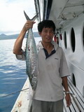 แสงแดดยามเช้าส่องกระทบผิวน้ำสะท้อนเป็นประกายระยิบระยับ เป็นสัญญาณบอกถึงการเริ่มต้นวันใหม่ ท้องฟ้าที่สดใสปราศจากเมฆหมอก ไต๋หนูบังคับเรือแล่นมาถึงหินกองหน้าหาดพร้าวเกาะกูด อุปกรณ์ชุดสายลอยถูกหยิบขึ้นมาผูกทุ่นโฟมเตรียมไว้ ไก่ ไปเตรียมชุดลอยอินทรีมาป่ะ ปลาทูโม่งตัวใหญ่ถูกช้อนขึ้นมากห้องขังเหยื่อ ขึ้นมาแล้วบรรจงเกี่ยวเบ็ดตัวเล็กเบอร์ 10 ที่ใต้ผิวหนัง ก่อนจะโยนมันลงน้ำ ไก่ค่อยๆ ส่งสายให้มันออกไปนะระวังให้สายตึงอยู่เสมอ อย่าดึงสายออกมากองละ จนนายไก่ปะการังส่งสายให้ปลาทูจนได้ระยะไกลพอสมควร แล้วตั้งเบรกเปิดสัญญาณคลิกเสียงไว้ก่อนจะนำมาปักไว้ในกระบอก แกรกกกกกกกก' ยังไม่ทันที่นายไก่ปะการังจะเดินหันหลังออกไปได้ไม่กี่ก้าว รอกของนายไก่ก็ส่งเสียงร้องดังสนั่นลั่นเรือ อินทรีเล่นคันของไก่แล้ว เสียงร้อง เอ๊ะอะเอ็ดตะโลดังลั่น นายไก่ รีบหันหลังกลับโดยอัตโนมัติ แล้วผวาเข้าไปคว้าคันขึ้นมาวัดไป 1 ฉึก