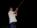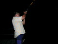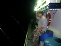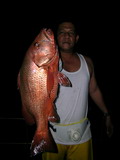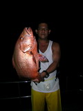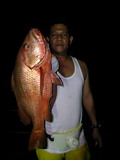 มันเป็นสัญญาณบ่งบอกเวลาของวันนี้ค่อยๆ ลดน้อยลงไป ป่ะไต๋หนู วิ่งไปซากเรือกันเลยดีกว่า เดี๋ยวจะมืด จะค่ำเสียก่อน เวลาผ่านไปนานนับ ชั่วโมงครึ่ง เรือจูเลียไวท์ก็เดินทางมาถึงซากเรือในเวลาที่มืดค่ำพอดี สมาชิกเริ่มทยอยลุกขึ้น มาคว้าคันเบ็ดเกี่ยวด้วยหมึกตายที่แวะซื้อมาจากเรืออวน แล้วไปหย่อนลงน้ำข้างกาบเรือ พอตะกั่วถึงพื้นปุ๊บ คุณพรชัยก็โดนทักทายทันที โอ๊ะ มันกินเลยพี่ พรชัย กล่าวแบบไม่อยากจะเชื่อเมื่อปลาดึงคันเบ็ดที่ถืออยู่ทันที ที่เหยื่อลงเตะพื้นดิน ก่อนจะงัดเอาอังเกยไซร์เกิน 2 โล ขึ้นมานอนในตะกร้าเป็นตัวแรก คราวนี้ไม่รู้คันใครเป็นคันใคร แต่ละคนทั้งคุณปิยะ เจ้าเต้ปลาแมน เจ้าไก่ปะการัง เฮียสมรวยและคุณบุญธรรม ต่างก็วัดกันคนละตุ๊บคนละตั๊บ อังเกยไซร์ไล่เลี่ยกันทั้งนั้น และแล้วพี่หมูอ่อนนุช ก็เรียกเสียงฮือฮา จากเพื่อนๆ เมื่อพี่หมูอ่อนนุช งั้นเอาปลาแดงเขี้ยว ไซร์เกิน 4 กิโลขึ้นมานอนอ้าปากหวอในตะกร้า อู้ ฮู ไอ้เขี้ยวตัวนี้ใหญ่ดี จัง เฮียสมรวยหลุดปากออกมา