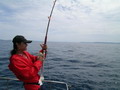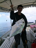 ในขณะที่สายลอยพึ่งจะประสบผลสำเร็จ สมาชิกที่ลงสายหน้าดินไว้ ก็ได้เฮ ลั่นกันบ้างเมื่อนายรวยปลาแมน ใช้ชุดสปินนิ่ง งัดปลาจนคันโก่ง ปลาอะไรวะรวย นายเต้ปลาแมนถามเพื่อนรัก ปลาตะเล วะเต้เอ็งรู้จักเป่า ฮะ ฮ่า! นายรวยตอบแบบกวนโอ้ย ในขณะที่บางคนกำลังจดจ้องอยู่กับทุ่นลอย และอีกบางคนกำลังจดจ่ออยู่ที่ปลายคัน ก็ต้องตกตะลึงเมื่อเห็นวัตถุขนาดใหญ่เคลื่อนตัวอยู่ใต้ผิวน้ำ ห่างจากท้ายเรือไม่เกิน 1 เมตร มันกำลังมุ่งหน้าไปยังหัวเรือ หลามวาฬ ตัวใหญ่อยู่ท้ายเรือครับ มีไอ้ช่อนว่ายตามหลังมาด้วย 3 ตัว เสียงร้องตะโกนบอกให้เพื่อนๆ ได้รับรู้ถึงแขกผู้มาเยือนเรา ว่ามันคือปลาวาฬสีน้ำเงินตัวยาวกว่า 10 เมตร ที่ร่ายล้อมไปด้วยปลาช่อนทะเลตัวใหญ่ถึง 3 ตัว พวกเราได้แต่มองดูความสง่างามของหลามวาฬตัวนี้ จนมันว่ายผ่านเลยไปจนลับตา ในขณะที่ดวงตะวันเลื่อนคล้อยตัวต่ำลงเรื่อยๆ