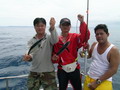 คุณปิยะ บรรจงอัดปลาตามจังหวะ ของเทรนเนอร์ที่คอยพร่ำบอก วู้.....เยี่ยม ได้ตั้ง 5 ตัวแน่ะ พวกเราแบ่งปันกันอัดปลาแบ่งปันกันโยก กว่าจะมาถึงเกาะกูดเราก็ได้ปลาโอเกือบเต็มจะตะกร้า เอ้า ถึงแล้ว ระวังหน่อยนะครับหมายนี้ เก๋าใหญ่นะครับ ไต๋หนู เตือน อุปกรณ์ชุดใหญ่เตรียมพร้อม หมึกหอมถูกช้อนขึ้นมาเกี่ยวก่อนจะหย่อนลงยังที่หมาย ป๊าบ ! อุ๊บ! อ๊าค!. เสียงเหล่านี้ดังเล็ดรอดออกมาจากปากพี่หมูอ่อนนุช และเจ้าเต้ปลาแมน เมื่อคันที่ตัวเองถืออยู่โดนเก๋าลูกหมูเข้ามางาบเหยื่อหมึกหอม วิ่งจู๊ด เล่นเอาคนอัดปากเบี้ยวปากบูดถือคันโน้มอัดอยู่ชั่วครู่ คันที่โค้งง้อก็ชี้เด่ โอว์ มายก๊อด สายขาดไปแล้ว เสียงคนอัดร้องอุทานออกมาเสียงดัง ปลาเก๋ามันจากไปพร้อมกับเอาเบ็ดขนาด 7/0 ติดปากมันไปด้วย เมื่อความหวังที่จะยลโฉมเก๋าลูกหมู มีอันต้องพังทลาย ไปพร้อมกับ เหยื่อหมึกหอมที่มีก็หมดลง