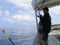 ฟ้าเริ่มจะสางแล้ว ดวงอาทิตย์กำลังขึ้นจับขอบฟ้า การตกปลาหน้าดินจึงจำต้องยุติลง เรือจูเลียไวท์ กำลังเคลื่อนตัวเข้ามายังเกาะกูด เพื่อมาตกปลาเก๋าลูกหมู ตามที่ไต๋หนูได้บอกไว้ กับการเดินทางอีก 2 ชั่วโมงคงจะเซ็งตายแน่ถ้าไม่มีอะไรให้ตื่นเต้น เต้โว้ย เอาเหล้ามากินท้ายเรือดีกว่าวะ และแล้ววงสุราก็เกิดขึ้นบนพื้นที่ ที่กว้างขว้างของท้ายเรือ Julia White เอาเหยื่อเบิร์ดมาลากปลาโอเล่นกันดีกว่า เอาม่ะ นายพรชัย ทำสีหน้างวยงง ก่อนจะถามว่า ปลาบินของพี่หมูโอเชี่ยน นี่นะหรือครับ เอามาลากปลาโอได้ อื่มใช่นี่แหละเหยื่อลากสำหรับปลาโอโดยเฉพาะเลยละ ไว้เล่นแก้เหงาระหว่างเรือวิ่งได้ดีมากเลยละ เหยื่อเบิร์ด' เหยื่อลากสุด Hot จากพี่หมูโอเชี่ยน จึงเป็นทางเลือกที่จะนำมาเล่นเพื่อเป็นการ ฆ่า' เวลาระหว่างที่เรือแล่น ปรี๊ดดดดด' เสียงนกหวีดดังลั่น ตามด้วยเสียงร้องตะโกนจากนายพรชัย ปลากินเบ็ดแล้ววววว! ไต๋หนูเบาเครื่องเรือลง นายพรชัยรับหน้าที่เปิดเกมส์ ลากปลาโอ' ด้วยน้ำหนักที่หนักอึ้งกว่าจะกรอเอ็นเก็บสายเข้าได้ก็เรียกเหงื่อเม็ดโป้งๆ ผลุดขึ้นที่ใบหน้านายพรชัยได้หลายเม็ด โอ้ย หนักฉิบเป้งเลยพี่ นายพรชัยกล่าว ก็แน่ละ ปลาโอตั้ง 4 ตัว จะไม่หนักได้ยังไงละฟ่ะ พรชัยเปิดเกมส์ลากปลาโอได้สวยหรูกับปลาโอถึง 4 ตัว เอ้า! ต่อไปคิวใครครับ คุณปิยะ มาลองเล่นดูม่ะ สนุกดี ดีกว่าอยู่เปล่าๆ พวกเรานั่งจิบเหล้าไป ปากก็คุยกันไป แต่สายตากลับไปเพ็งมอง ปลาบิน' ที่วิ่งตีน้ำอยู่ท้ายเรือ เฮ้ย ! ปลากินอีกแล้ว คุณปิยะตะเบ็งเสียงออกมา ก่อนที่เสียงร้องจะร้องดังลั่นตามมาติดๆ กรอกกกกก' เล่นเองเลยครับปิยะ พี่หมูอ่อนนุชกล่าว