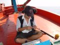 กะไว้ให้คนขับเรือมองเห็นจะได้ไม่ชนแก แต่ก็ไม่วายจะถูกเรือประมงลำใหญ่พุงเฉี่ยวเรือของตาลุงจนเรือลุงผลิกคว่ำ