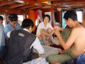 เรือน้ำใจก็จอดลอยลำอยู่ด้านนอกสุด การขนของลงเรือ จึงเป็นไปอย่างยากลำบาก