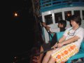 ส่วนภายนอกเก๋งเรือ เด็กเรือต่างช่วยกันกางแขนไฟไดร์ มีแสงไฟจากเรือไดร์สว่างจ้า