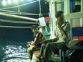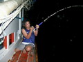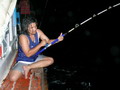 รุ่งอรุณเช้าวันใหม่ หลังจากได้สอบถามเรื่องเหยื่อของเรือแต่ละ ก็ทำให้พวกเราอุ่นใจหมดกังวลเรื่องเหยื่อ คราวนี้ ก็มาเป็นเรื่องปลา กันละ เสียงวิทยุสอบถามเรือแต่ละลำ ว่าใครได้ ลูกหมู กันแล้วบ้าง ซึ่งก็ได้รับคำตอบเป็นเสียงเดียวกัน ว่า ยังไม่ได้ นี่มันก็ปาเข้าไปจนเกือบจะบ่ายโมงแล้ว ยังไม่มี ทีมใดได้ปลากันเลย โดยเฉพาะทีม หมอผีใจง่าย บอกมาว่า ลูกทีมแต่ละคนเมากลิ้ง ยังไม่ตื่นนอนกันเลย บางคนนอนเอาขาไปพาดคอจุ่มโพ่ ที่กำลังทำอาหาร ดัง โผล่ะ เล่นเอาจุ่มโพ่นั่งทำอาหารไป นับดาวนับเดือนไปเลยละ ฮ่า! ส่วนทีม ปอบนมเปรี้ยว ได้แจ้งสถานการณ์มาว่า ปลาที่ตกได้ โดนหม่ำไปหมดแล้ว ปลาไม่พอหม่ำ ขณะนี้ สาวกปอบ กำลังอดอยากอย่างหนัก ถึงขั้นจะหม่ำไต๋ระ กันอยู่แล้ว ถึงกับขีดเส้นตายว่า ถ้าไต๋ระหาปลาให้หม่ำไม่ได้ บรรดาปอบ จะหม่ำไต๋ระแทน ทำเอาไต๋ระต้องรีบขับเรือตระเวนหาปลาให้กับบรรดาปอบ จนไม่รู้จักเหน็ดจักเหนื่อย มุ่งมั่นตระเวนหาปลามาเลี้ยงพวกปอบอย่างเอาเป็นเอาตาย คงจะกลัวว่าถ้าไม่ได้ปลามาจะโดนพวกปอบบนเรือแดรกเอาละ จิ ใช่ม่ะ ครับไต๋มะระ ส่วนเรือของทีม กุ๊กกิ๊ก นำทัพโดย ป๋าเหนี่ยว ก็ออกตระเวนวิ่งเรือจนน้ำบาน หาปลาจนเหงื่อแตก ซ๊ก ซ๊ก ซึ่งก็ไม่ผิดหวัง เมื่อป๋าเหนี่ยวของเรา นำพาลูกทีมทั้ง คุณโฟว์ และน้องเติ้ล ไปงัดเอาปลาเก๋า ไซร์ใหญ่ 9 กิโลกรัม และ 6 กิโลกรัมขึ้นมาประดับทีมถึง 2 ตัว ก็ต้องขอปรบมือให้กับผู้นำทัพ ป๋าเหนี่ยวของเรา กันละครับ
