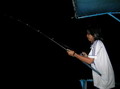 เพื่อนๆ ให้ความสนใจเรียนรู้ มารุมล้อมพี่หมู จนแน่น เหงื่อเม็ดโป้งๆ ผลุดขึ้นเต็มหน้าผาก พี่หมูเราก็ไม่ปริปากบ่นว่าร้อน เลยสักนิด (ก็นานๆ พี่หมูโอเชี่ยน จะได้เป็นพระเอก สักที เน๊อะพี่หมูว่า ม่ะ! ) เพื่อนๆ ตื่นเต้นกับความรู้ใหม่ที่ได้รับ ได้หัดทำเหยื่อ Jet ด้วยมือของตนเอง ทำเสร็จพี่หมูก็แสนจะใจดี ยกผลงานชิ้นนั้นให้คนทำ นำกลับไปเป็นที่ระลึกกันเลย งานนี้ไม่ปลื้มก็ไม่รู้จะว่ายังไงแล้วละจริง ม่ะครับ จนกระทั้งสมควรแก่เวลา ที่เราจะต้องแยกย้ายกันไปลงเรือใครเรือมันตามที่ได้จัดไว้ให้ โดยพี่หมูโอเชี่ยน และสมาชิก ทีมหมูหัน ไปลงเรือไต๋วุฒิ ที่ท่าเรือเซ็นเตอร์พอย ส่วน ทีมปอบนมเปรี้ยว นำโดยเฮียเล็ก เจ้าเดือน พี่ใหญ่และสาวกปอบ ไปลงเรือเนตรวารี ไต๋มะระ ส่วนทีมหมอผีใจง่าย นำทัพโดยหมอผีคิม และป๋าซิง กับสมาชิกปลาแมน ไปลงเรือไต๋เปีย ทีมนี้บอกว่า งานนี้แค่ได้ร่ำสุรากับเพื่อนผู้รู้ใจ ก็ Happy แล้วปลาเปอ ไม่ตก ไม่เป็นไร อีกทีมนำทัพโดย พี่เหนี่ยว ผู้พันกระดูกเหล็ก รับหน้าที่เป็นจอมทัพ นำลูกทีมในนาม ทีมกุ๊กกิ๊ก ลงเรือไต๋น้อง ส่วนทีมสุดท้าย ทีมนี้เป็นมือใหม่ทั้งทีม จึงตั้งชื่อทีมว่า ทีมมือใหม่ โดยมีผมนายชนบท เป็นผู้พาทีม ลงเรือไต๋ตี๋ใหญ่ และนับจากวันนี้ไปอีก 2 คืนกับอีก 2 วัน พวกเราจะมารวมตัว พร้อมกันอีกครั้งที่หน้าเกาะหวาย คืนนี้สิ่งที่สร้างความกังวลใจ ให้กับคนตกปลามากที่สุดก็เห็นจะเป็นเรื่องเหยื่อ เพราะคืนนี้ เป็นคืนข้างขึ้น 14 ค่ำ พระจันทร์จรัสแสงแดงแจ๋ การเฉอวนคงจะกระทำได้ยากลำบาก เมื่อเทียบกับคืนที่พระจันทร์ มืดตึดตื๊อ อย่างคืนข้างแรม ความหวังที่จะได้ปลาหมึกมาทำเหยื่อตกปลา ก็คงจะต้องให้เพื่อนๆ ในทีม ร่วมแรงร่วมใจช่วยกันตกปลาหมึก ด้วยเหยื่อโยทะกา ซึ่งมันก็เป็นวิธีเดียว ทีพอจะช่วยแก้ไข สถานการณ์ได้มาก สำหรับคืนที่พระจันทร์สว่างแจ้งแดงแจ๋ เช่นคืนนี้ และแล้วกิจกรรมแรกที่ต้องอาศัยความสามัคคีในกลุ่ม ก็เกิดขึ้น ทุกคนประจำหน้าที่ ใครมีหน้าที่ ตกปลาหมึก ก็ตกไป ใครมีหน้าที่ คอยปลดหมึกออกจากโยทะกา ก็ทำหน้าที่ของตัวเองไป ยามนี้เวลาประมาณ 3 ทุ่มเรือทุกลำ คงถอดสมอจอดตรงตำแหน่ง ที่ไต๋เรือแต่ละคาดการณ์ว่าจะมีหมึกเยอะมากที่สุด ค่ำคืนนี้ หน้าเกาะหวาย มีเรือลอยลำเปิดไฟไดน์หมึกอยู่เพียง 4 ลำ มองดูลักษณะแขนไฟของเรือแต่ละก็รู้ว่ามีเรือของใครบ้าง เอ๋ะ ! เรือของเจ้าเปีย แอบไปซุ้ม ไดน์หมึกแถวไหนละ เนี่ย ไต๋เปียคงจะไปซุ้มเปิดไฟไดน์หมึกที่อื่น เป็นแน่ ค่ำคืนนี้ก็คงจะมีเพียงแต่เรือของพวกเรา ทั้ง 5 ลำ ที่ออกมาลอ