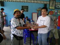 เที่ยงตรง วันที่ 22 เมษายน ที่ร้านอาหาร นำโชค ผู้คนมากมายจากทั่วทุกสารทิศ ทยอยเดินทางมาถึง สำรับอาหารที่เตรียมไว้ ถูกลำเรียงนำมาวางบนโต๊ะ ต้อนรับหมู่คนตกปลา และกลุ่มของไต๋เรือ ทั้ง 5 คน เสียงแซวหยอกล้อ ยั่วเย้า ของเพื่อน ที่แซวกันไปแซวกันมา ผสมผสาน กับเสียงเฮฮา ดังไม่ขาดสาย เหมือนกับพวกเรา กำลังอยู่ใน วัย จ๊าบ ช่วงเวลานี้ จึงมีแต่ความสุข กับความสนุก เท่านั้นก็ว่าได้ หลังจากอิ่มหมีพลีมันกันแล้วก็เข้าสู่เวลา ถ่ายทอดความรู้ ในด้านการอุปกรณ์ตกปลาให้กับเพื่อนๆ ที่มาร่วมงาน นักตกปลาจำนวนไม่น้อย ที่ไม่มีความรู้เรื่อง คันเบ็ด ก็จะได้รู้กันก็วันนี้แหละ ในครั้งนี้เราได้รับเกียรติ์จาก เฮียกรวย ผู้มากประสบการณ์ในด้าน สร้างคัน Custom Build ภายใต้ชื่อ Infinity Instructor ได้มาถ่ายทอดความรู้ ให้กับเพื่อนๆ ที่มาร่วมงาน นอกจากนี้ อีกคนท ี่ต้องกล่าวถึง ก็คือ พี่หมูโอเชี่ยน หลังจากเคยมาร่วมงานนี้เมื่อปีที่แล้ว ก็เกิดติดใจบอกกับผมว่า ไม่เคยตกปลา กับคนแปลกหน้า แล้วสนุกอย่างนี้มาก่อน พอมาปีนี้พี่หมูโอเชี่ยน โทรมาขอจองตั้งแต่ยังไม่ได้เปิดทริบ (นี่ยังดีน่า ที่พี่หม ูได้ตกปลา กับคนแปลกหน้า แต่ถ้าพี่ได้ตกปลากับคนหน้าแปลก แล้วจะเป็นยังไง ฮ่า!) ครั้งนี้พี่หมูโอเชี่ยน ได้ขนวัสดุการ ทำเหยื่อ Jet และเหยื่อปลาบินมาร่วมช่วยสร้างสีสัน ให้กับงานนี้ดูบรรยากาศที่หาที่ไหนไม่ได้ กับการสอน เทคนิคการทำเหยื่อ Jet ให้กับคนที่สนใจแบบตัวต่อตัว