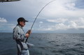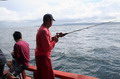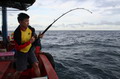 เห็นดีด้วยพร้อมกับลุกไปเก็บเบ็ดของนายตั้ม ที่เกี่ยวปลาสีกุนไว้ ทันใดนั้นเอง สิ่งที่ไม่คาดฝันก็เกิดขึ้นอีกครั้ง เมื่อคันเบ็ดในมือไต๋พนธ์ ถูกกระชากอย่างรุนแรง ไต๋พนธ์วัดคันสวนทันที บ๊ะ คนกำลังจะเก็บ ก็โดนดีสะแล้วสงสัยจะเป็นช่อนทะเล