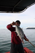 พี่เปี๊ยกกล่าวเสียงอ๋อย แล้วปลาก็หยุดฉวยเป็นไปตามที่เราคาดไว้ไม่ผิด ตะวันเริ่มคล้อยตัวลงต่ำ เวลาสำหรับวันนี้ใกล้หมดไป ไต๋พนธ์บังคับเรือสู่เกาะไม้ซี้ เพื่อตกปลาสากและหลับนอน อ้าวพี่เปี๊ยก