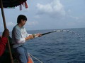 ถึง 4 สาย จวบจนปลาหยุดฉวยเหยื่อ ตี๋ใหญ่จึงบอกให้พวกเราเก็บสายเบ็ด เพื่อที่จะย้ายไปยังหมายใหม่ที่อยู่ไม่ไกลออกไปเท่าใด