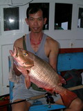 เจ้าเติ้ล ก็งัดเอาปลาสร้อยนกเขา ไซส์โต ขึ้นมาประดับเรือ ตามมาน้องสามที่งัดเอาปลาเก๋าไซส์