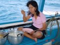 10 คู่ จากด้านของเรือ ก็โกย อ้าวขึ้นมายังชั้ยสอง ที่เราตั้งสำรับ กับข้าว