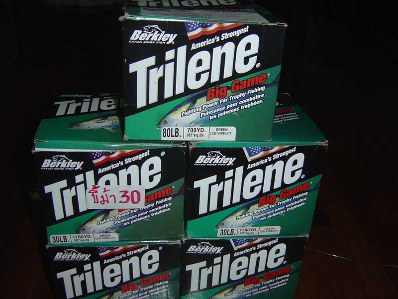 Trilene big game เท่าที่เห็นจะมีหลายสี ผมซื้อมาใช้สองสีคือสีเขียวขี้ม้ากับสีเทา แต่จากความรู้สึกของผมสีเขียวขี้ม้าจะดีที่สุดในราคาที่เท่ากัน