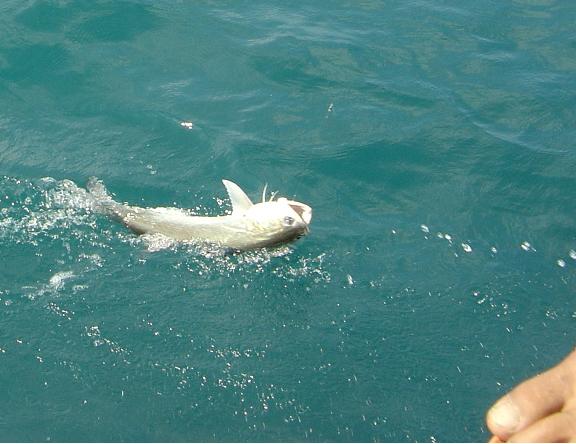 เราโชดดี ที่เจอฝูงปลากุเรา ช่วงสายของวันนี้ หลังจากรับประทานแห้วมาทั้งคืน แต่เราก็โชคร้ายเพราะเหยื่อเป็นเราหมด เลยได้มาแค่ นี้ซึ่งหมายปลากุเราของไต๋เปี๊ยกถ้ามีหมึกเป็นปลาจะฉวยดีมาก