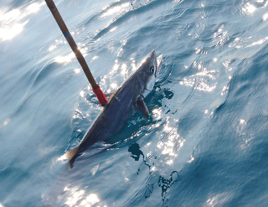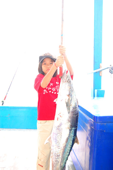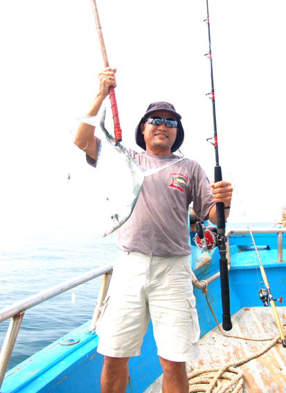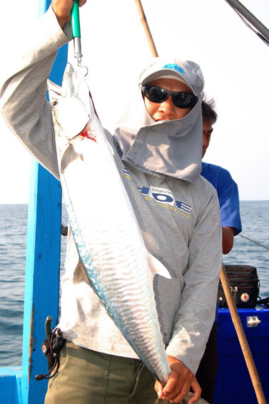 คนนี้แกฮอทจริงๆเลยครับ ลอยสายปลาอินทรีย์ตั้งหลายสาย ก็เลือกกินแต่คันของน้าเล็กศรีราชาอยู่คนเดียว ตัวนี้เป็นปลาอินทรีย์ใหญ่สุดของทริปเลย วิ่งอัดปลาเกือบรอบลำ (เรือยาว 27 เมตร)