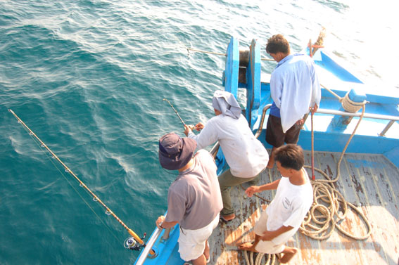 มะรุมมะตุ้มโสกปลาเหยื่อกันทางท้ายเรือแบบสนุกสนานเลยครับ โดยมือโสกมี 2 คนคือน้าต้นและน้าใหญ่ มือปลดก็น้าบรรจง น้าเสือ และน้าโจ๊ก
