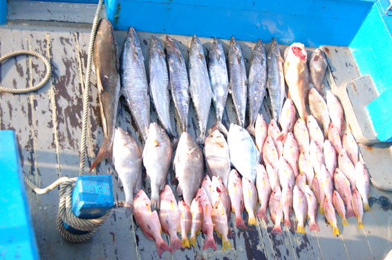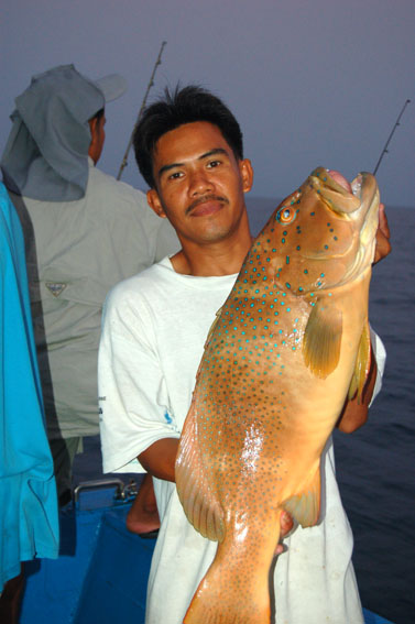 หลังจากไดร์หมึกและวิ่งเข้าหมายมาร่วม 5 ชั่วโมง ลงเบ็ดได้ไม่นาน น้าใหญ่แห่งบ้านฉางก็อัดช่อนทะเล 13 โลกว่าๆขึ้นมาครับ น้าใหญ่แกอายกล้อง เลยให้น้าโจ๊กอ่างศิลามาเป็นแบบให้