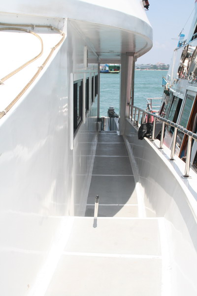 ทางเดินรอบลำเรือ พร้อมกระบอกปักคันรอบลำ