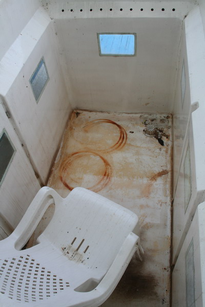 ภายในห้องขังเหยื่อมีเก้าอี้ไว้เฝ้าเหยื่อด้วย