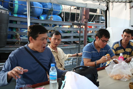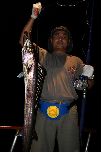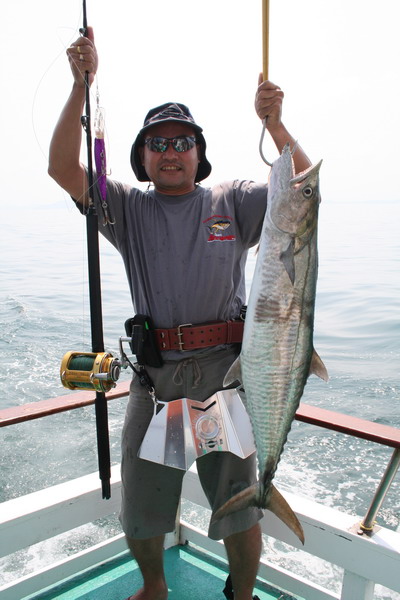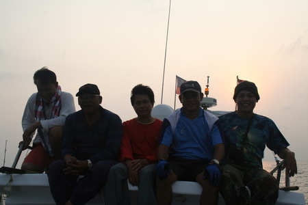 “เราจะถึงที่หมายประมาณ 3 ทุ่มครึ่ง พอพ้นหัวเกาะนี้ใครที่กระหายอยากจะซ้อมมือลงสาย Trolling ก็ได้แต่ลงไม่เกิน 3 สายนะครับ” สิ้นเสียง โย ชนบท สหายต้นหลิว ที่รอโอกาส นี้มานานรีบขานรับทันที “ผมขอลงไอ้ม่วงแสบ น้าบรรจง กับผู้พันเหนี่ยวจะเอาตัวไหนลงมาสู้กับผมครับ” พี่เหนี่ยวไม่รอช้า ตอบรับคำท้าของสหายต้นหลิวทันที “ผมเอา อีเขียวซ่าส์ ลงไปสู้แล้วกัน แล้วจะรู้สึกว่าอีเขียวซ่าส์ ของผมมันจะซ่าส์แค่ไหน แล้วน้าบรรจงละ จะเอาตัวไหนมาสู้กันครับ” น้าเหนี่ยวหันหน้ามาถามน้าบรรจง ในขณะที่น้าบรรจงกำลังมะงุมมะงาหรา ประกอบอุปกรณ์ TIAGRA 50 WLRSA ตัวใหญ่พอๆ กับหม้อหุงข้าว น้าบรรจง ระสายตาจากรอกตัวยักษ์ แล้วเงยหน้าหันไปทางน้าเล็กศรีราชาก่อนจะปรึกษาคู่หู ว่า “ เราจะเอาตัวไหนไปสู้กับดี น้าเล็ก” เล็กศรีราชา ครุ่นคิดอย่างหนัก เพราะดู คู่ต่อสู้แต่ละคน ฝีมือไม่ธรรมดา “เอาอะไรดีละ ผมก็ไม่รู้เหมือนกันว่าปลาพม่ามันชอบแบบไหน น้าโยว่าไง เอาตัวไหนดี” น้าเล็ก ศรีราชา หันมาถามน้าโย ชนบท เป็นตัวช่วยสุดท้าย “เอาหัวเจ๊ต สีชมพู หวานแหว๋ว ลงไปสู้ เลยน้าบรรจง คราวที่แล้ว เหยื่อตัวนี้เด็ดสุดๆ เดี๋ยวป๊าด เดี๋ยวป๊าด โดนไปหลายตัว” โย ชนบท กล่าวพร้อมกับหยิบเหยื่อเจ๊ต ยื่นให้ “ ลงขันคนละ 300 นะ กองเชียร์ใครจะถือหางใครก็เลือกได้เลย ปลาฉวยของใครก่อนรับไปเลย ปลาอะไรก็ได้ ไม่เน้น” ผู้พันเหนี่ยว เสนอกติกา ให้ทราบ ในขณะที่น้าบรรจง กำลัง มะงุมมะงาหรา งุ้มง้าม ประกอบชุดสายหน้า สหายต้นหลิว กับผู้พันเหนี่ยว รีบฉวยโอกาส ปล่อยไอ้ม่วงแสบและอีเขียวซ่าส์ ลงน้ำทันที แล้วเหตุการณ์ไม่คาดฝันก็เกิดขึ้น เมื่อสหายต้นหลิว ที่กำลังปล่อยสายส่งไอ้ม่วงแสบ ไปได้ไม่ทันไร ก็ยกคันตะวัด “นี่แน่ ไอ้ม่วงแสบผมทำงานแล้ว ยังลงสายไม่เสร็จเลย ฮ่า ฮา” เสียงสหายต้นหลิว ดีใจจนสุดจะยับยั้ง “อาราย ผมยังไม่ได้ลงสายเลย แบบนี่ไม่ยุติธรรมนี่หว่า ตัวนี้ไม่นับ เอาตัวใหม่” เสียงน้าบรรจงโวยวายเป็นการใหญ่ ในที่สุดสหายต้นหลิวก็ลาก อินทรี ไซร์งามขึ้นเรือได้เป็นผลสำเร็จ “เย้.....มื้อเที่ยงนี้มีปลากินแล้วพวกเรา” เสียงดีใจสุดพรรณนาของบรรดากองเชียร์ ดังขึ้นก่อนที่นายเท้ง จะเอาตะบอกมาเผ่นกระบาล อินทรีตัวนั้น ‘โป๊ก’ เสียงดังฟังหนักแน่น