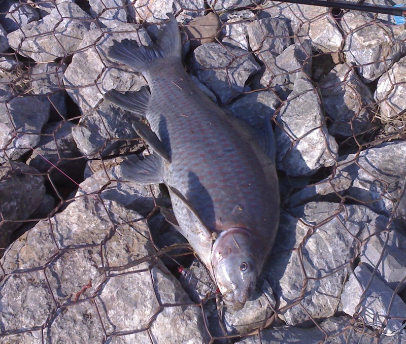 ในภาพที่ผมตกได้ ที่แม่น้ำแม่กลอง น้ำหนัก 3 โลกว่าครับ ผมใช้ รำคั่ว + ไผ่เขียว + ขนมบัง+หัวเชื้อนมแมวนิดหน่อย ผสมทุกอย่างให้เข้ากันใส่ถังปิดฝาสัก 1 คืน จะดีมากเลยครับ วิธีตกก็ปั้นหุ้มตะกร้อตัวเบ็ด( ผมใช้เบอร์ 10 ของ กามา ) เกี่ยวเม็ดโฟม ตกหน้าดินครับ ลองดูนะครับผมได้หลายตัวแล้วครับ....