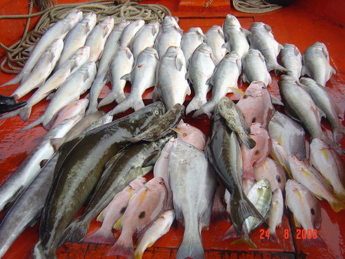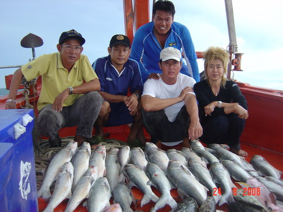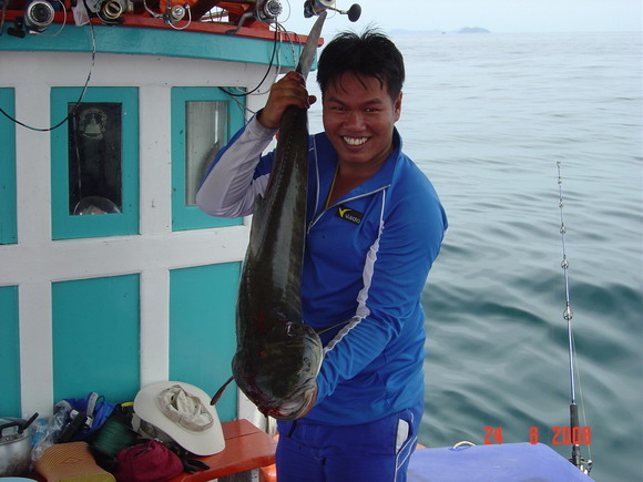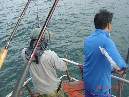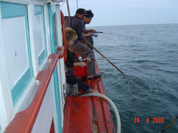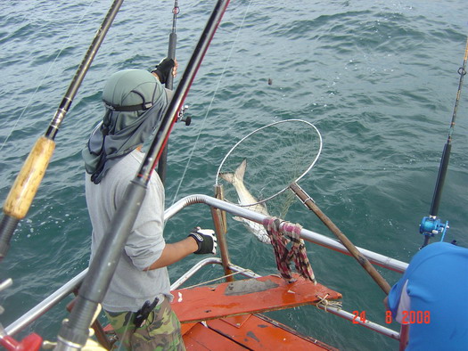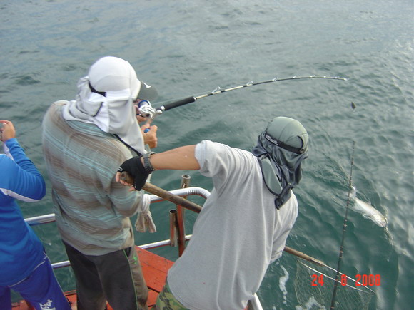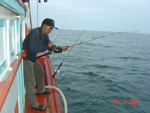 ท้ายเรือก็ชุลมุลวุ่นวายเมื่อฝูงปลากุเราเข้าฉวยเหยื่อ