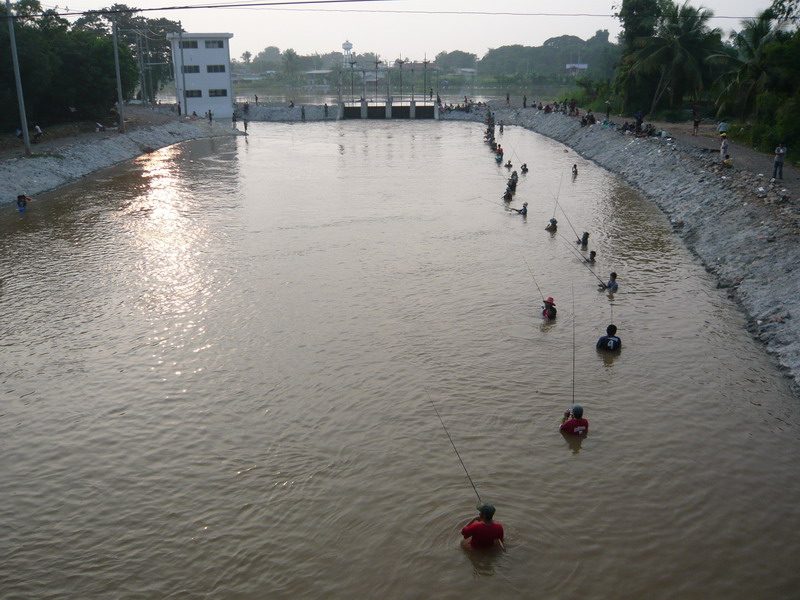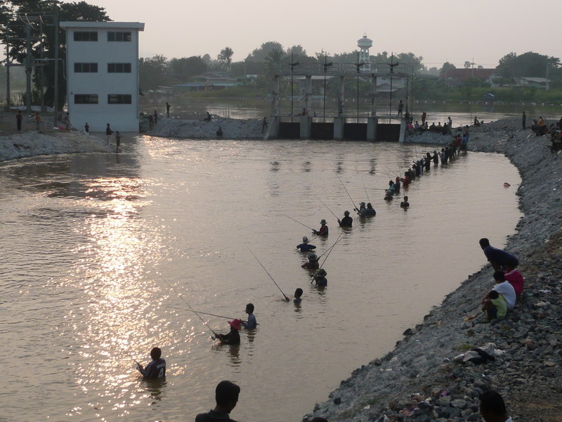 ผ่านไปปากคลองบอระเพ็ดกำลังเปิดประตู(เพิ่งสร้างเสร็จใช้ปีแรก)ให้น้ำเข้าบึง