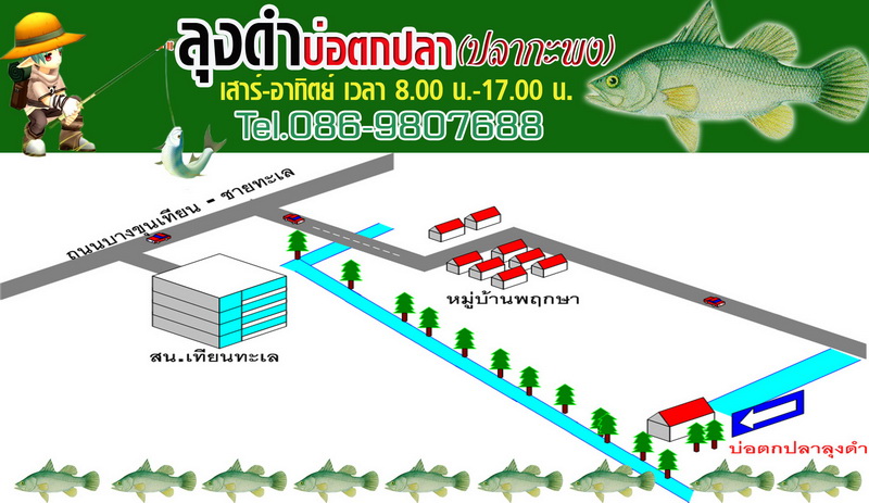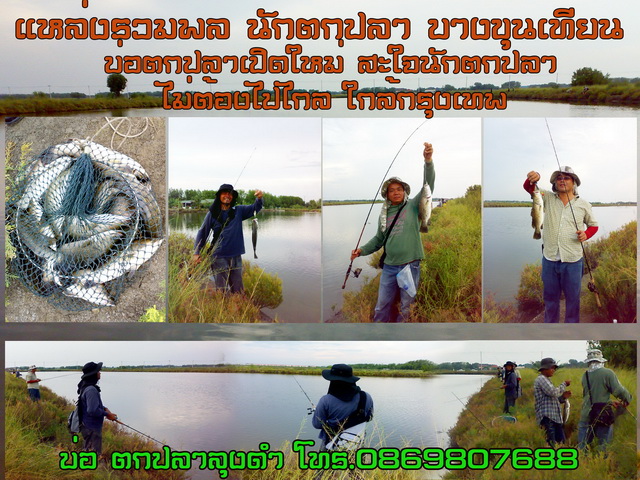 หวัดดีครับ ผมขอแนะนำบ่อตกปลาเปิดใหม่แถวบางขุนเทียนครับ เป็นบ่อปลากะพง น่ะครับ แต่ล่ะตัว 1 กิโลขึ้นครับ เพิ่งเปิดเมื่อวันเสาร์ที่แล้ว ได้ไปเกือบคนล่ะ 20 ตัว บางคนได้ไป เกือบ 40 ตัว ครับ