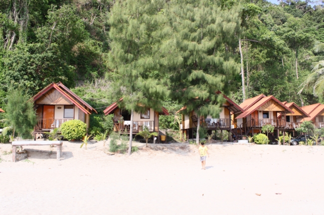 บ้านพัก เรียงรายเป็นแถว เดินไม่กี่ก้าวก็ถึงหาดทรายแล้วครับ