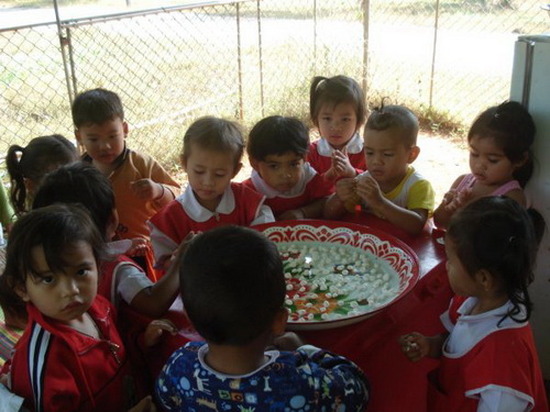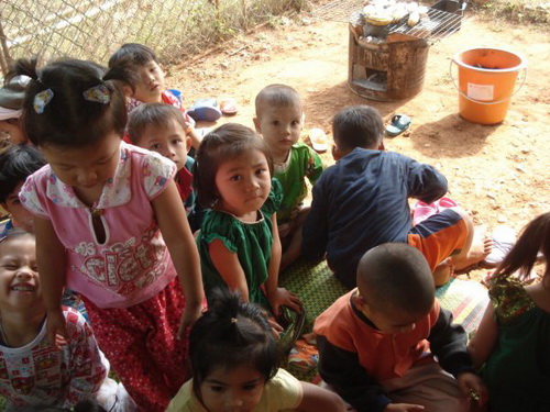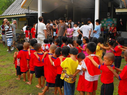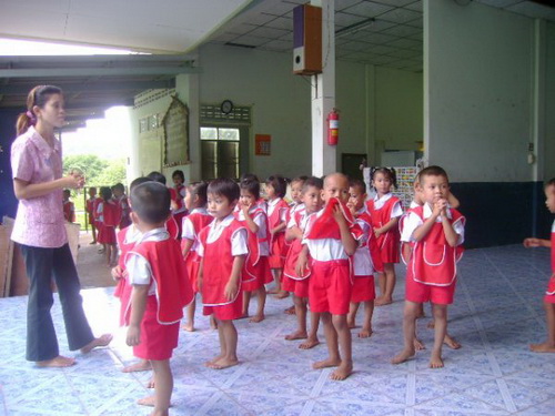 เด็กๆ ที่เราจะไปมอบข้าวสาร ให้ครับ กำลังตั้งใจเรียน